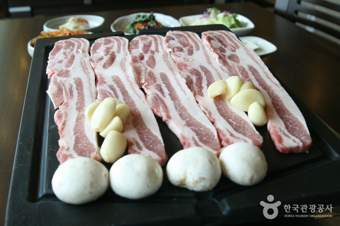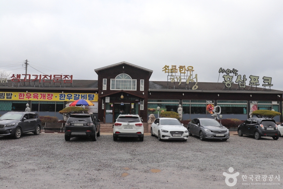 부드럽고 쫄깃한 생갈빗살이 있으며 등심, 채끝, 차돌박이, 치맛살 등 다양한 부위를 한 번에 맛볼 수 있는 메뉴로 소 한 마리가 있다. 증평의 명물인 홍삼포크도 함께 맛볼 수 있는 곳이다. 또한 명품한우 해성은 증평 한우 브랜드로 국립 농산물 품질 관리원으로부터 국내 최초로 무항생제 축산물 인증을 받았다는 점에서 믿음이 가고, 두 번째로 증평 축협의 직영 매장이라 가격 면에서 거품이 없다는 것이 가장 큰 특징인 음식점이다. 한우의 맛을 제대로 느낄 수 있는 곳이다.