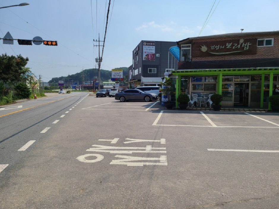 건업리에서 30년이상 재래식으로 직접 담근 우리콩 된장, 청국장으로 유명한 보리밥 정식 전문점이다. 인근에 골프장이 있어 골프장 맛집으로 입소문이 난 곳이다. 건강한 보리밥 한상 차림에 싱싱한 쌈 채소와 야채가 어우러진 시골스러운 반찬과 진한 된장찌개는 푸짐하면서도 옛날 시골 할머니가 해주시던 맛을 생각나게 한다.