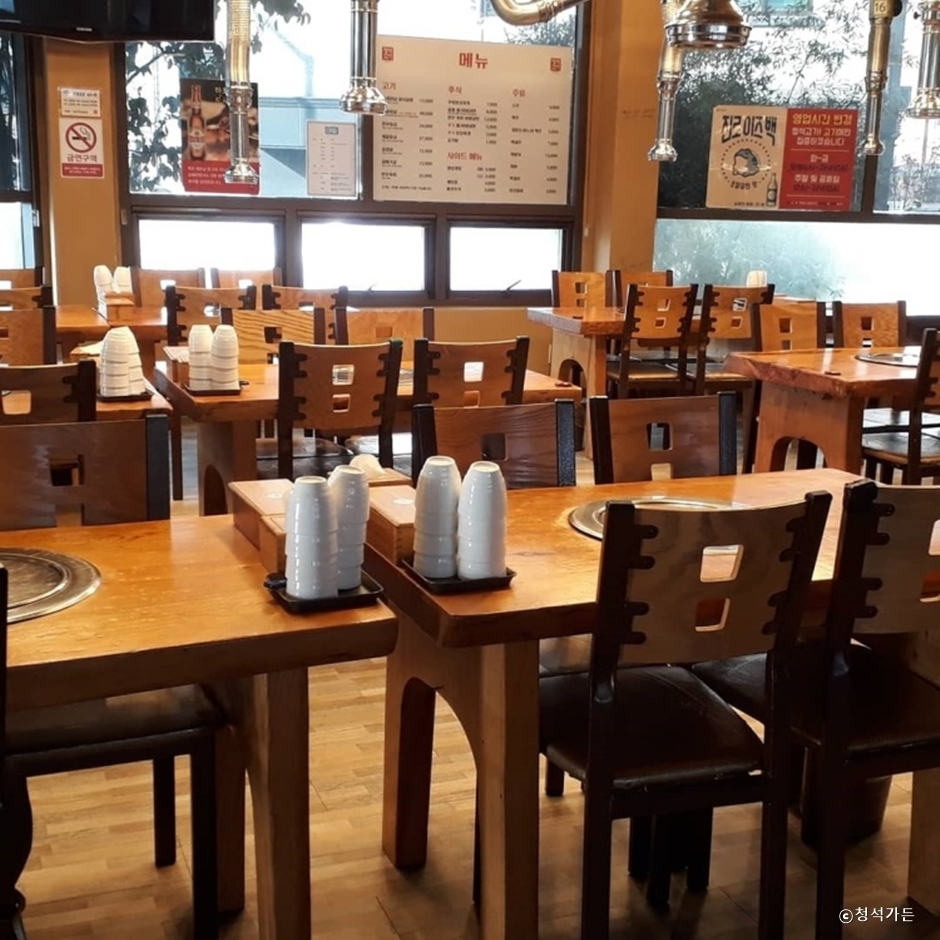 청석가든은 경기도 광주종합터미널 근처에 있는 숯불갈비 전문점이다. 2층으로 된 단독건물로 매장 앞에 넓은 주차장이 있어 편하게 주차를 할 수 있다. 깔끔한 매장 내부는 좌식 테이블과 입식 테이블이 골고루 구비되어 있으며 가족 모임, 단체모임 등 다양한 인원을 수용할 수 있는 단체석도 있다. 천연 과일로 양념한 양념돼지갈비가 이곳의 인기 메뉴로 직원이 직접 구워줘서 편하게 식사할 수 있다. 또한 매장 한쪽에는 셀프바가 있어 추가 반찬을 편하게 이용할 수 있다.
