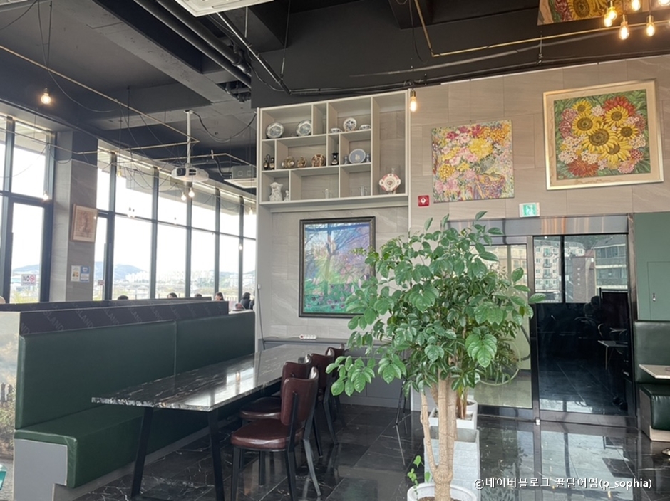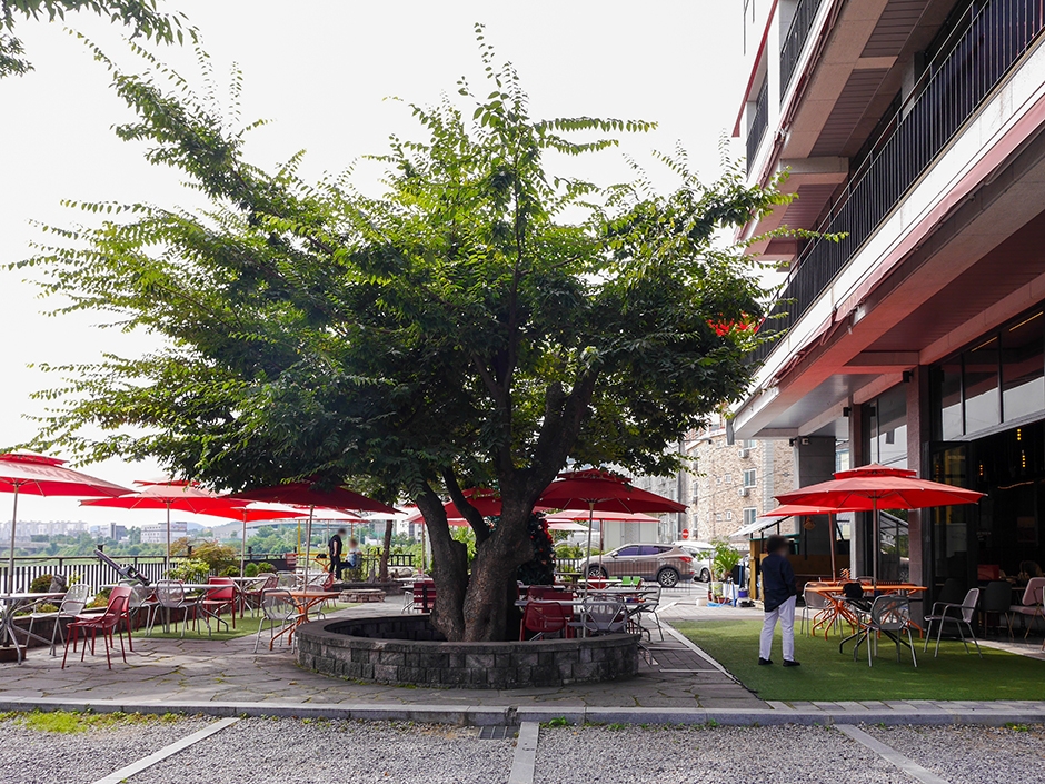 젤코바는 ‘느티나무’라는 뜻으로, 카페 앞에 보호수로 지정되어 있는 300년 된 느티나무가 있다. 또 곤지암천도 바로 옆에 위치해 있어 탁 트인 뷰를 즐길 수 있다. 야외 좌석에서 시원한 하천이 흘러가는 모습을 감상할 수 있다. 1층 야외 마당에는 하천으로 내려가는 산책로가 있으며, 2층에는 갤러리카페처럼 곳곳에 그림이 전시되어 있다.