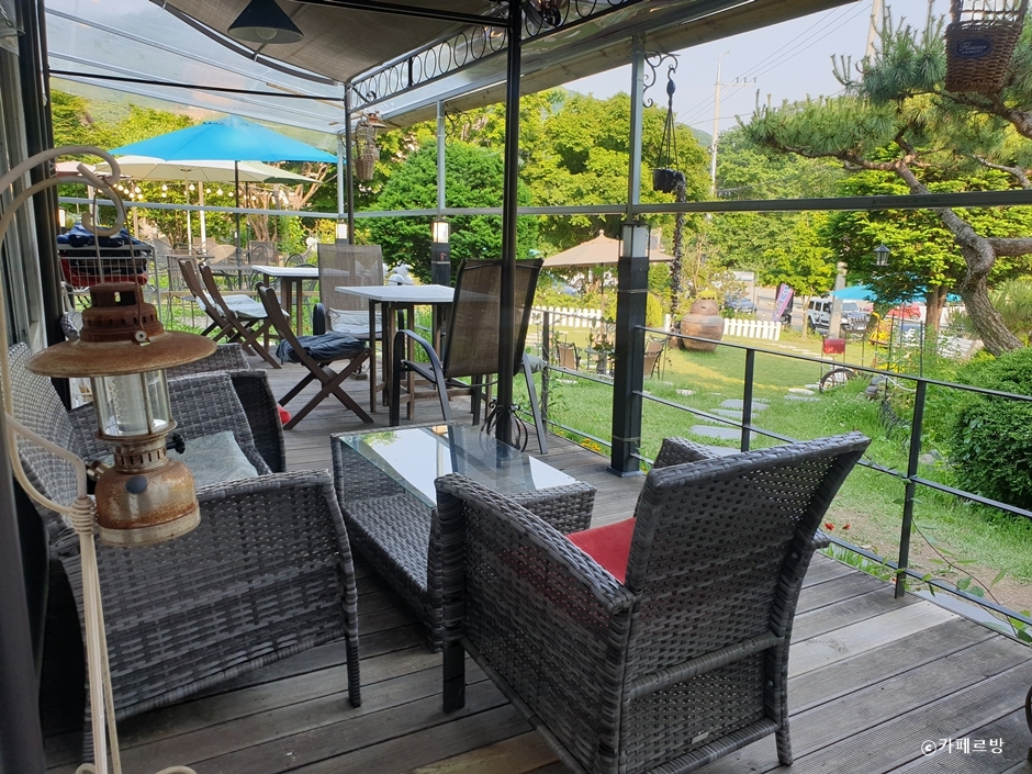 광주시 남한산성면 남한산성로에 있는 넓은 정원이 있는 카페다. 2층으로 된 외관이 전원주택처럼 보인다. 들어가는 입구부터 꽃과 나무들이 눈에 들어온다. 잘 가꾸어 놓은 푸른 잔디가 있는 정원에는 야외 테이블이 있다. 낮은 흰색 울타리 옆으로 파라솔 철제 테이블이 있는 야외자리를 많이 찾는다. 정원 가운데에는 모닥불을 피울 수 있는 장비가 세팅되어 있다. 야간에 야외에 조명을 켜 놓으면 감성 카페가 된다. 내부는 통유리로 채광이 잘 들어오며 아기자기한 인테리어들로 따뜻한 분위기다. 테라스에도 좌석이 있어 선택하여 앉을 수 있다. 커피와 음료, 브런치와 베이커리를 판매하는데 몽블랑 빵이 인기 있다. 꽃피는 계절에 나들이하며 바람 쐬기에 좋은 장소다. 뛰어놀 수 있는 마당이 있어 어린이와 함께하는 나들이에도 좋다.