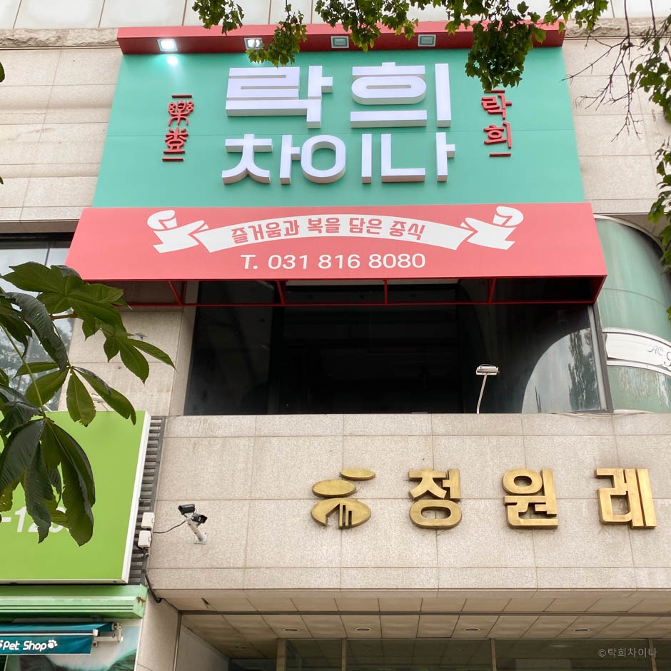 일산 호수공원 근처 락희차이나는 중식 코스요리 전문점이다. 내부엔 2인부터 단체 손님까지 앉을 수 있는 테이블이 넓게 펼쳐져 있고 개별 룸도 갖추고 있어서 가족 모임이나 단체 회식에 적당하다. 주문은 자리에 앉아서 태블릿 PC로 원격 주문할 수 있고 물, 단무지, 앞접시 등 사소한 호출도 모두 원격으로 할 수 있어서 편리하다. 점심 세트 메뉴 락 세트는 해파리냉채, 유산슬, 칠리새우, 탕수육이 나오고 식사는 짜장면, 짬뽕 중에 선택해서 먹을 수 있다. 가성비가 좋아 근처 직장인이 많이 찾는 중화요리 맛집이다.
