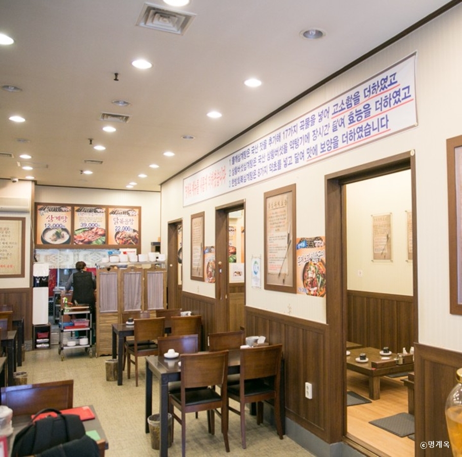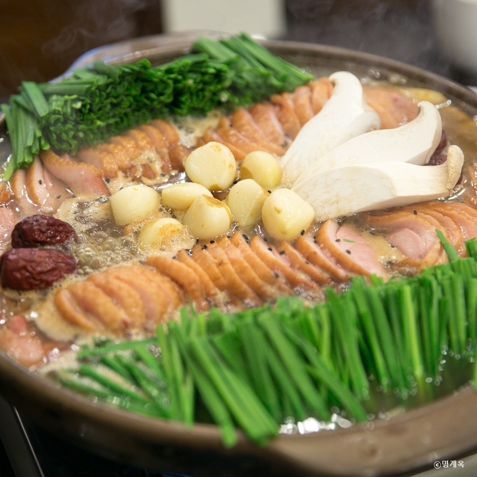 명계옥은 일산 라페스타 근처에 있는 백숙 전문점이다. 건물 지하에 주차장이 있고 2시간 무료로 주차할 수 있다. 크지는 않지만 깔끔한 내부에 테이블이 여유롭게 배치되어 있다. 식사 시간에는 대기가 있을 수 있고 조리 시간이 있어 전화로 예약하고 방문하면 기다리지 않고 식사할 수 있다. 금산인삼, 국내산 상황버섯, 국산 들깨 등 최상급 식재료를 사용하며 9가지 약재를 넣어 끓인 육수는 깊은 맛을 낸 보양식으로 평가받고 있다. 청정지역에서 관리하는 웅추 닭을 사용하고 매일 신선한 닭을 제공하기 위해 삼계탕은 하루 60마리만 판매하고 있다.