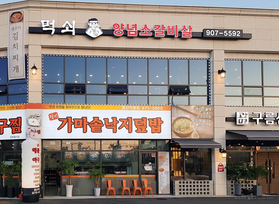 먹쇠는 중산동에 있는 소갈빗살 맛집이다. 건물 2층에 있다. 내부는 입식 테이블이 넓게 있고, 룸도 따로 있어서 가족 모임이나 회식 장소로 적당하다. 기본 찬은 파채와 쌈 종류와 시원한 콩나물국이 나오고 건강한 한약재에 재운 맛있는 소갈빗살이 나와 숯불에 구워 먹는다. 모자란 반찬은 셀프바를 이용하면 된다. 추가 메뉴로 냉면과 된장찌개, 공깃밥을 주문할 수 있고, 식사 메뉴로 갈비탕, 곰탕, 불고기전골, 김치찌개 등이 있다. 주차장은 건물 뒤편에 넓게 있다.