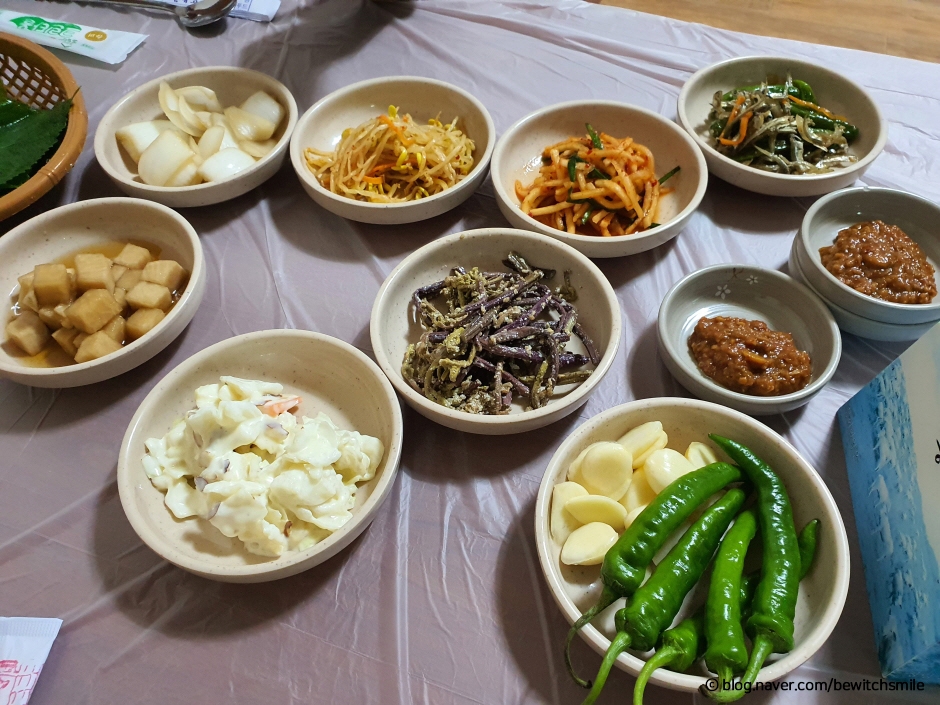 청송의 달기 약수는 400년의 역사를 가진 알칼리성으로 위장, 신경, 빈혈 등에 좋기로 소문난 약수이다. 일제강점기 때 약수를 먹기 위해 천막을 친 사람들에게 숙식을 제공하면서 생긴 것이 약수 식당이다. 처음 집을 지으면서 심은 마당 한가운데 등나무가 30년이 넘은 전통 있는 업소이다. 대물림을 하고 있는 주인장의 대표적인 상차림은 약수로 고아 내는 토종닭이다. 달기 약수에 토종닭과 황기, 인삼, 시오, 감초와 같은 한약재와 마늘, 대추, 녹두, 찹쌀 등을 넣어 푹 고아 낸 백숙은 쫀득쫀득하면서 구수한 맛으로 육질이 풀어지지 않고 국물이 아주 맑은 것이 남다르다. 백숙을 전부 건져 먹은 다음 닭죽이 나오는데 이 또한 별미이다. 밑반찬도 넉넉한데 모두가 유별난 맛이다. 배추 물김치, 무지, 가죽나물지가 별미이다.