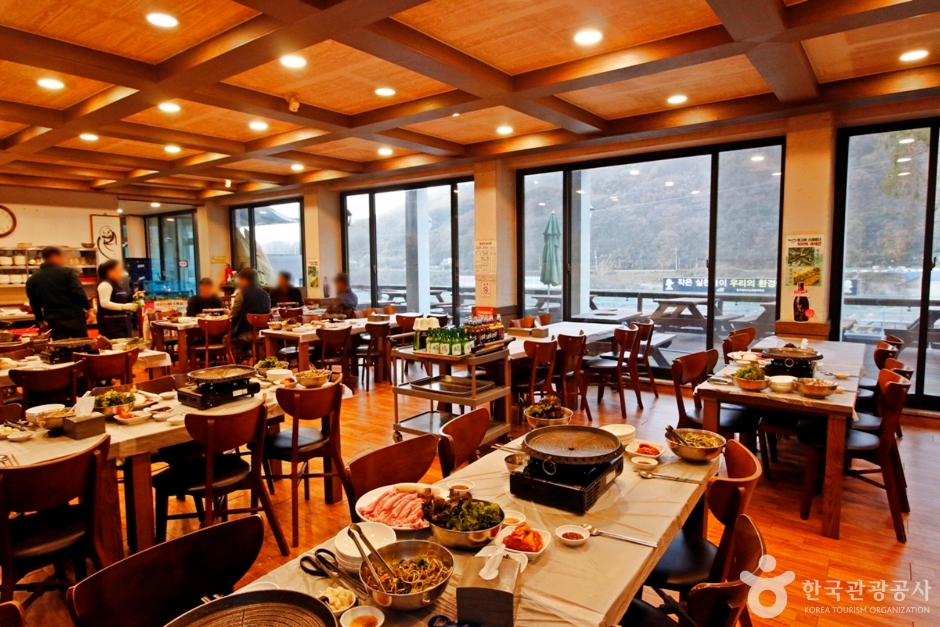 충주댐 가든은 한식 전문점으로 민물회와 매운탕으로 유명하다. 이 밖에도 불고기정식과 한정식이 유명한데 일품 한정식, 수라 한정식은 하루 전에 예약해야 맛볼 수 있다. 메인홀은 넓어 단체 손님을 맞기에 적합하며 모임을 위한 노래방 기계도 준비되어 있다. 야외 테라스에도 자리가 마련되어 있어 식사를 하면서 남한강을 바라볼 수 있다.