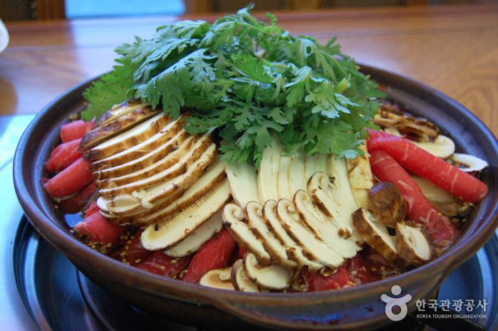 강원 양양군에 있는 송이버섯마을은 송이버섯을 주재료로 다양한 요리를 만들어 판매하는 식당이다. 이곳에서는 송이버섯전골에 한우를 더해 샤부샤부도 즐길 수 있다. 마지막에 칼국수 면을 추가할 수 있는데, 송이와 한우가 우러난 국물이 칼국수와 잘 어울린다.