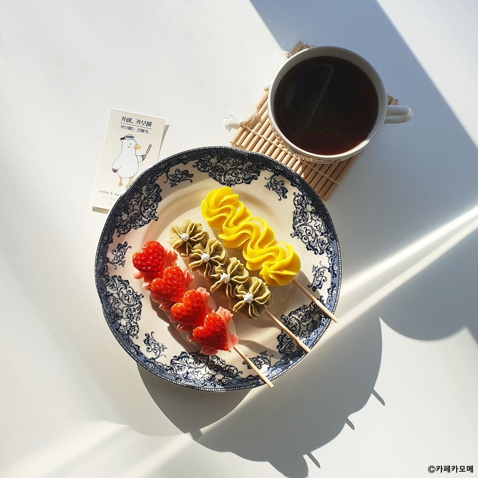 카페카모메는 강원도 강릉시에 있는 당고 카페이다. 일본에서 먹던 당고가 생각나는 곳이다. 메뉴판에 메뉴를 일러스트레이션으로 그려 둬서 아주 귀엽고 예쁘면서 각 메뉴의 특성이 살아 있다. 모든 메뉴와 디저트를 직접 만들어서 제공한다. 모든 과일차는 직접 만든 수제청을 사용하고 있다. 내부를 포근하고 아기자기하게 꾸며서 편안한 느낌이다. 주문한 음식의 담음새로 아주 예뻐서 손대기가 아까울 정도이다. 인스타그램에 맞춤인 카페이다. 당고는 일본보다는 한국 입맛에 맞춰져 있다. 주차는 전용 주차장은 없지만 가게 앞쪽 골목에 주차할 수 있는 공간이 있다.