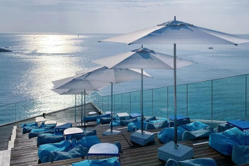 카페윤은 동부산 관광단지 입구에 위치하여 해운대와 기장이 가진 아름다운 부산 바다의 매력을 느낄 수 있는 디저트 카페이다. 코랄라니 사잇길로 내려오면 보이는 카페로 통유리로 되어 있어 창문을 통해 환상적인 오션뷰를 즐길 수 있다. 보기만 해도 힐링되는 절경 덕분에 가족이나 친구, 연인과 함께 오기에 좋은 곳이다. 메뉴는 커피, 라떼, 티, 에이드 등 다양한 종류의 음료를 맛볼 수 있다.