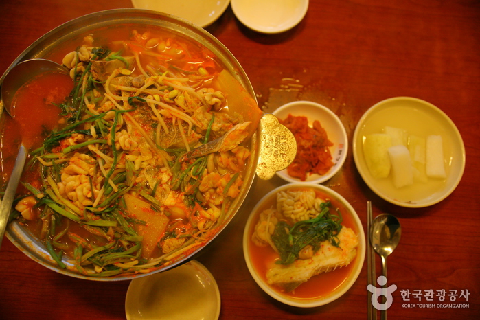 얼큰하고 시원한 대구탕 국물이 일품이며 대구와 함께 콩나물과 미나리의 맛이 국물에 우러나도록 푹 끓여먹으면 예술이다.