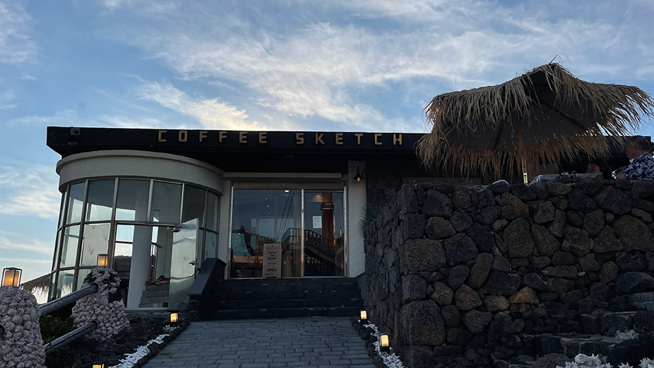 커피스케치는 서귀포 사계 용머리해안 매표소 옆에 있다. 뒤편으로는 산방산이 보이고, 바다 방향으로는 형제섬이 보이며, 카페 안팎은 제주다운 돌담과 나무창틀, 문과 서까래, 소라껍데기 등을 이용해 깔끔하게 꾸몄다. 바다를 향해 열린 창으로 액자사진을 찍을 수 있으며 항아리에 담긴 아포가토(항포가 토), 오븐에 구운 바스크 치즈케이크 등 시그니처 메뉴를 맛볼 수 있다. 주변 여행지로 용머리해안, 산방산, 사계항 등이 있다.