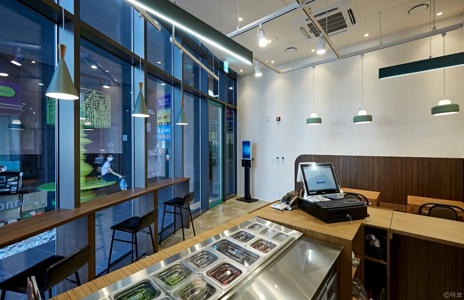 ?아보는 하남시 망월동에 있는 포케 맛집이다. 지하철 5호선 미사역 10번 출구에서 15미터 거리에 있어 대중교통 접근성이 좋다. 주차는 식당 상가 건물 지하에 할 수 있다. 민트색 문이 눈에 확 띄는 산뜻한 외관이다. 가게 안은 넓지 않으나 통창 창문을 통해 가게 안이 환하다. 아보카도 모양의 거울이 귀엽고 오픈된 주방은 청결하다. 주문과 동시에 담아 주는 포케와 샐러드는 취향에 따라 재료나 소스를 가감할 수 있다. 신선한 야채와 잘 손질된 토핑들은 먹는 이에게 건강한 느낌을 준다.