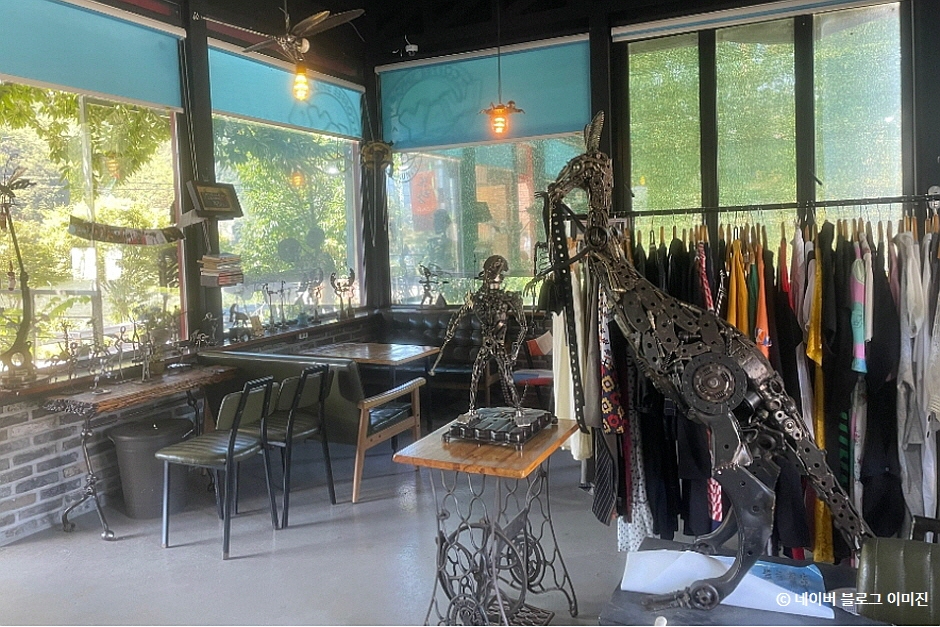 또랑카페는 정크아트, 즉 잡동사니, 폐품, 쓰레기를 활용한 미술작품을 같이 감상할 수 있는 이색카페이다. 입구에서부터 귀여운 밥솥화분이 맞이한다. 각종 커피, 라떼, 과일차, 허브차, 홍차, 프라푸치노, 버블티, 스무디, 컵빙수 등 다양한 메뉴가 있고, 베이글, 프레즐, 와플 등의 디저트류도 있다. 테라스에서 무주호를 바라보며 커피를 마실 수 있고, 카페 곳곳에 비치된 책이 많아 여유를 느끼기에 좋다. 마당에도 드럼, 양동이, 농기구, 파이프, 자동차 부품 등을 활용한 다양한 조각상들이 있어 둘러보기 좋다. 덕유산국립공원, 머루와인동굴 등이 주변에 있어 연계 관광하기 좋다.