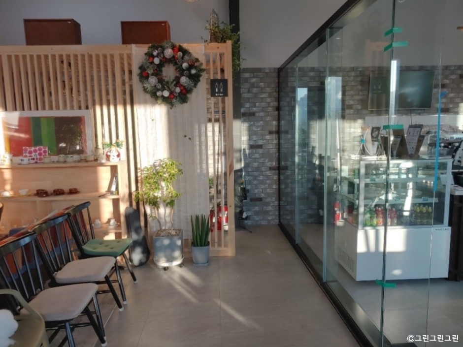 그린그린그린은 포천시 신북면에 있는 디저트 카페이다. 산, 나무, 잔디로 둘러싸인 시골 마을에 있는데 주위가 모두 초록이다. 마당에는 꽃도 많아 공기 좋고 보기도 좋다. 반려동물을 동반하면 실내에서는 하네스를 하고 있거나 안고 있어야 하고 야외에서는 풀어 놓고 있을 수 있다. 반려견이 실내를 이용할 때는 입장료를 내야하고, 지켜야 하는 규칙이 있으니 미리 확인하고 방문하는 것이 좋다. 반려동물에게도 연어랑 오리간식, 강아지 퍼푸치노 볶음밥 등 음식을 제공한다. 음료와 빵을 주문하는 공간은 반려동물이 접근하지 못하도록 분리되어 있다. 야외 공간은 2~3가지 공간으로 나누어져 반려동물들이 실컷 놀 수 있도록 준비되어 있다. 외부에는 반려견들을 위한 배변패드나 강아지 물통이 있다. 반려견을 위한 배려와 준비가 반려견 카페 수준이다. 하지만 반려동물을 동반하지 않는 손님도 많다. 자연을 감상하며 커피를 마시기도 좋은 곳이다. 시그니처 메뉴인 바닐라빈 라테가 인기가 좋다. 음료나 디저트 가격도 교외의 대형 베이커리 카페에 비해서 합리적이다. 자동차를 이용하는 손님이 많지만, 전용 주차장이 두 곳이나 있어 이용이 편리하다.