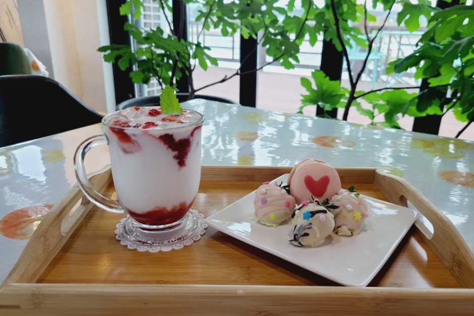 백일후애는 직접 운영하는 제과제빵실에서 신선한 과일과 식재료로 구워 건강하고 맛있는 디저트를 판매하는 카페로, 넓고 깨끗한 실내에 모던한 인테리어가 차분한 느낌을 주는 곳이다. 천사의 날개, 천국의 계단 등 사진을 찍을 수 있는 포토존이 곳곳에 있고, 잔디밭 테이블에서 반려동물과 어린이가 함께 휴식하고 즐길 수 있는 테마 카페이다. 또한 지역 특산품(복분자, 보리, 고구마)을 이용한 복분자 도넛, 고창 천일염 소금 빵, 호박고구마 앙금 찰보리빵 만들기와 신선한 과일로 과일 케이크 만들기 등 각종 체험 프로그램도 운영하고 있다.