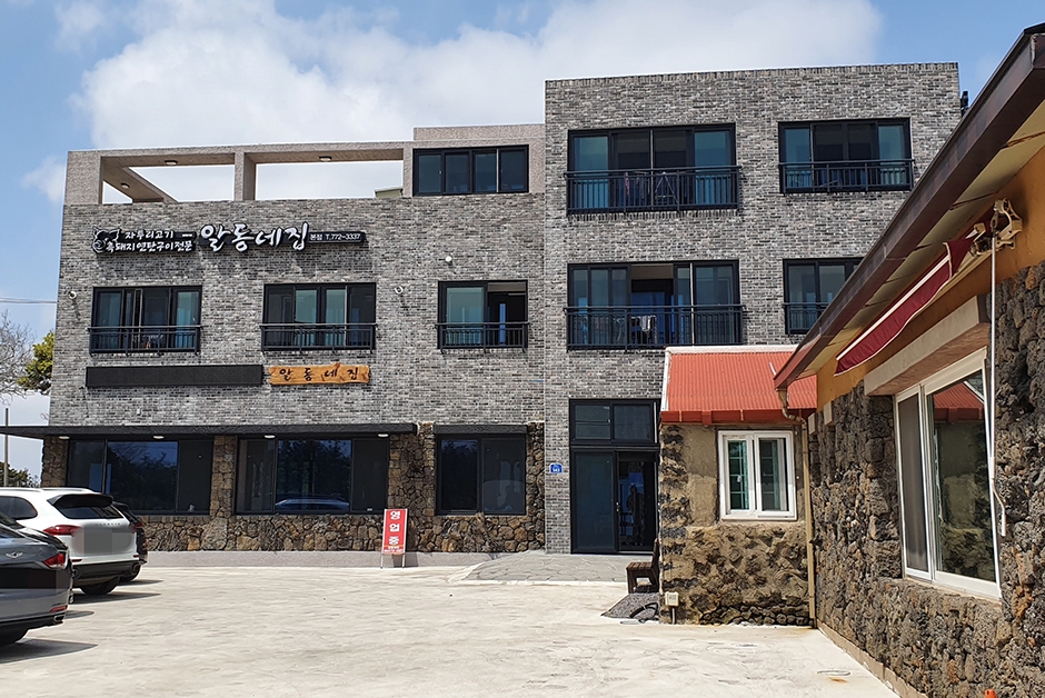 알동네집은 저지리 명리동회관 근처에 있다. 제주도 흑돼지 자투리구이와 흑돼지 삼겹살 연탄구이 전문점으로 자투리고기란 고기를 부위별로 나누어 추렴한 후 남는 부위를 뜻한다. 즉 어느 부위의 자투리인지 특정할 수 없기 때문에 구성은 항상 바뀌고 가격대가 저렴하여 도민이 즐겨 찾는 맛집이다. 함께 주문할 수 있는 돌 솥밥과 찌개 세트도 푸짐하여 여행자들도 많이 찾으며 식사류만 주문은 점심시간까지 운영한다. 주변 여행지로 환상숲곶자왈공원 등이 있다.