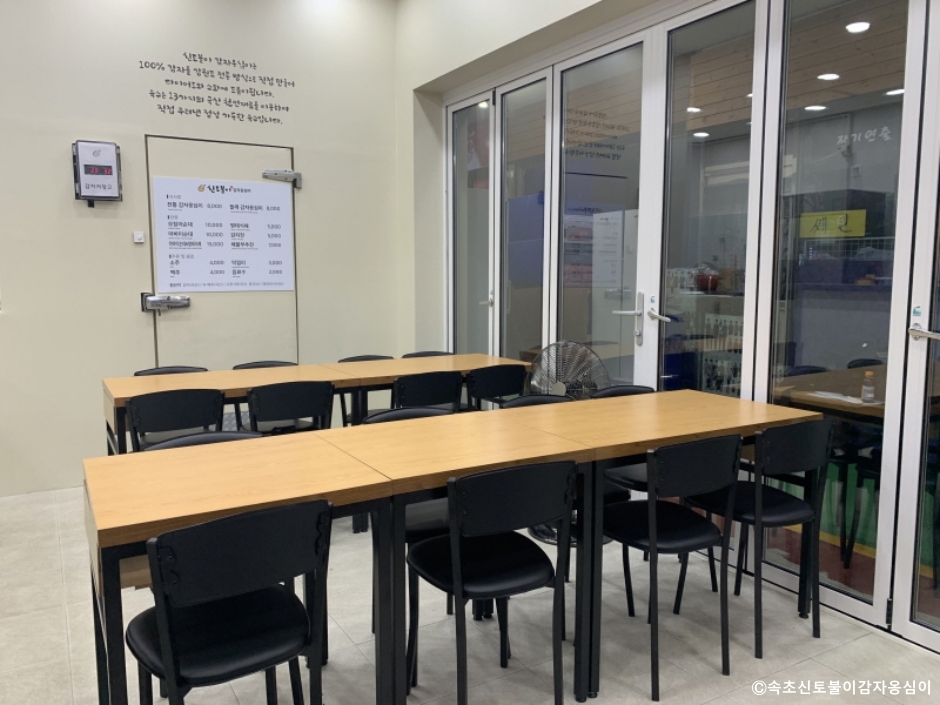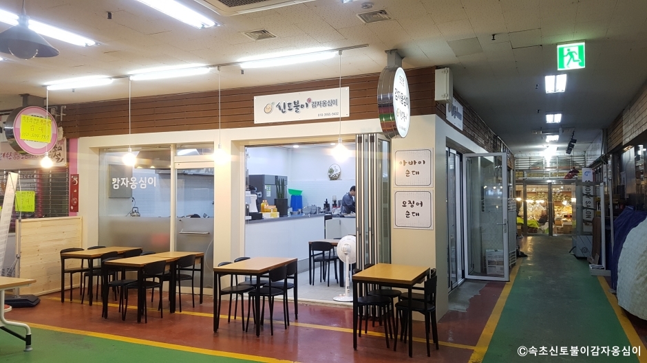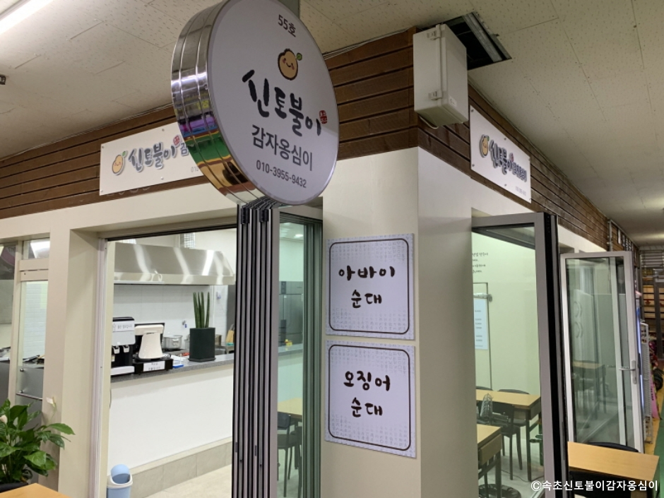 속초신토불이감자옹심이는 강원도 속초시 속초 중앙시장 안에 있는 강원도 토속 음식점이다. 전분이나 밀가루를 전혀 섞지 않고 100% 감자로만 만든 감자옹심이를 판매하고 있다. 육수는 13가지의 국내산 천연 재료를 이용해서 만든다. 다른 곳에서 먹어 볼 수 없는 쫄깃쫄깃한 식감이다. 감자옹심이는 식으면 딱딱하게 굳기 때문에 포장 판매를 하지 않는다. 국물에 들깨를 넣은 들깨 감자 옹심이(새알심)도 있다. 곁들임으로 감자전, 오징어순대 등을 즐길 수도 있다. 반찬으로 내놓은 김치와 깍두기는 국산 재료를 쓰고 있고 직접 담그고 있다. 대기가 많은 식당이므로 도착 즉시 문 앞에 있는 나우웨이팅에 등록해야 연락을 받을 수 있다. 주차는 중앙시장 공영 주차장을 이용하면 된다.