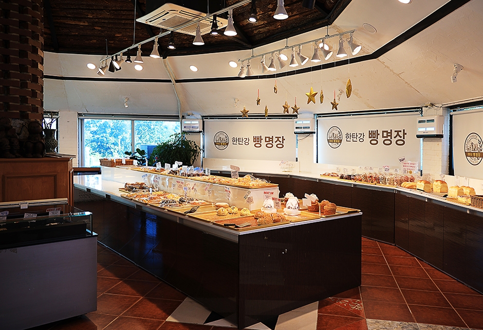 한탄강빵명장은 40여 년간 제빵사로 활동해온 명인이 만드는 빵을 맛볼 수 있는 한탄강 베이커리 카페다. 유기농 밀과 무염버터로 만든 천연발효종 빵으로 건강한 빵집으로 소문난 곳이다. 철원한탄강물윗길 입장권 구입 시에 제공되는 철원 지역화폐를 사용할 수 있어, 관광객들의 발길이 끊기지 않는다. 한탄강 주상절리와 은하수교를 산책하고 들리기 좋은 위치로, 갓 구운 맛난 빵에 따뜻한 커피로 휴식을 취할 수 있어 편리하다. 고석정이 지척이고 승일교와 송대소도 차로 10여 분 거리에 있다.