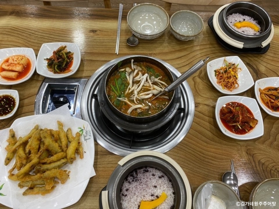 김가네원주추어탕은 강원도 원주시에 있는 원주 향토 음식 추어탕 전문점이다. 원주 추어탕은 다른 지역과 다르게 테이블에서 끓여 먹으면서 수제비를 넣어 먹는다. 다른 지역보다 매운맛도 더 있는 편이다. 추어탕은 갈아서 만든 것과 통으로 넣은 것을 별도로 판매한다. 좀 더 매운맛을 내는 얼큰이 추어탕도 있다. 밥은 공깃밥과 돌솥 밥을 선택할 수 있다. 지역 맛집이기도 하고 전국에서 손님들이 찾는 맛집이기도 하다. 근처에 사는 현지인을 위해서는 포장 창구를 별도로 두고 포장 판매를 하고 있고, 타 지역인에게는 택배 서비스를 하고 있다. 매장 건너편에 넓은 전용 주차장이 있어 이용이 편리하다.