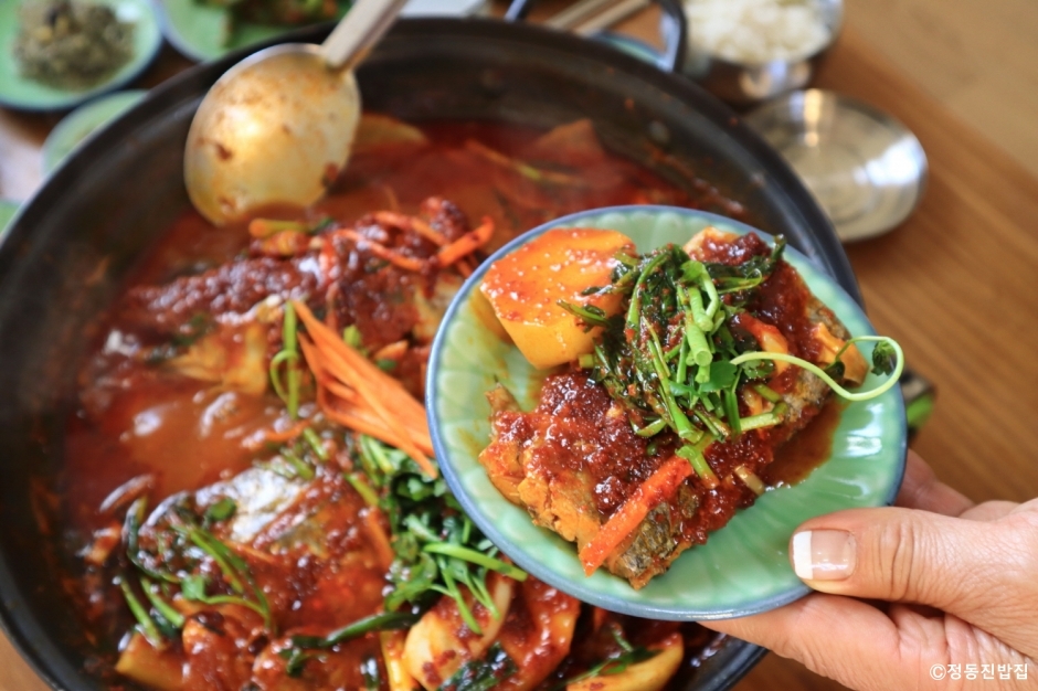 정동진밥집은 강릉시 정동진 기찻길 바로 옆에 있는 식당이다. 주택을 식당으로 개조해서 편안한 분위기를 연출했다. 방마다 탁자를 두어 식사를 할 수 있게 했고, 마당에도 평상을 두어, 날씨가 좋을 때는 마당에서도 식사를 할 수 있다. 주메뉴는 생선구이정식이다. 2~3가지의 모듬 생선을 20여 가지의 반찬과 함께 낸다. 2인 이상만 주문이 가능하지만 차려 낸 상을 보면 입어 벌어질 정도로 푸짐하다. 주차는 매장 앞에 가능하다. 정동진 해수욕장, 모래시계 공원 등과 멀지 않아 식사 전후에 함께 관광하기에 적당하다.