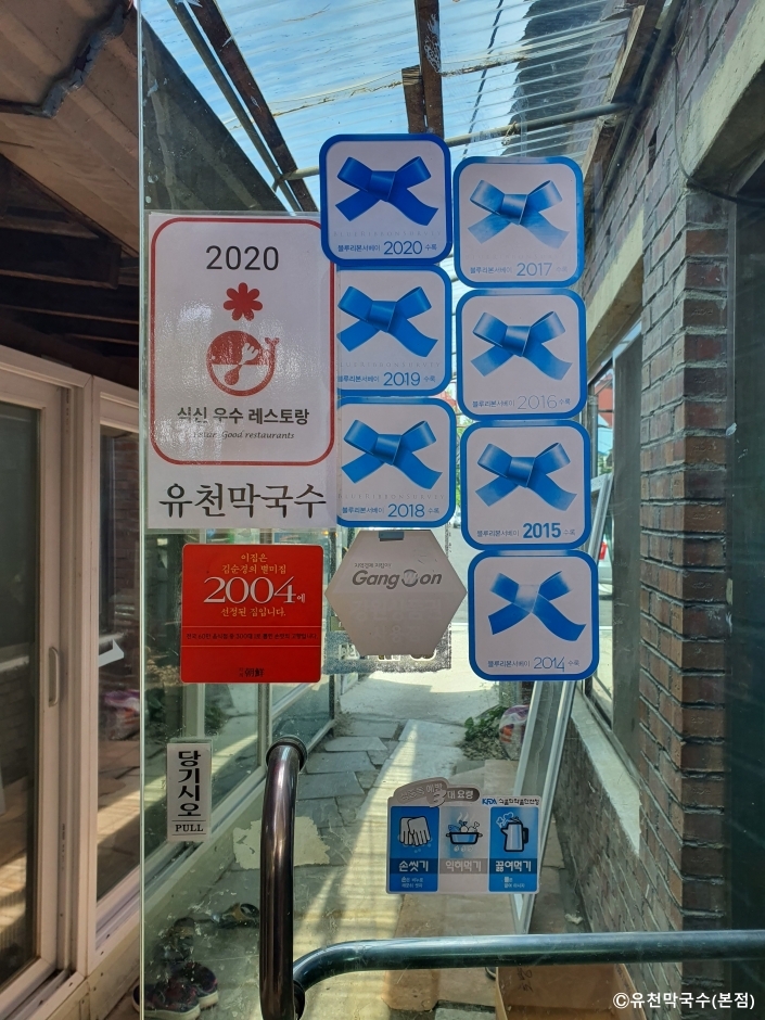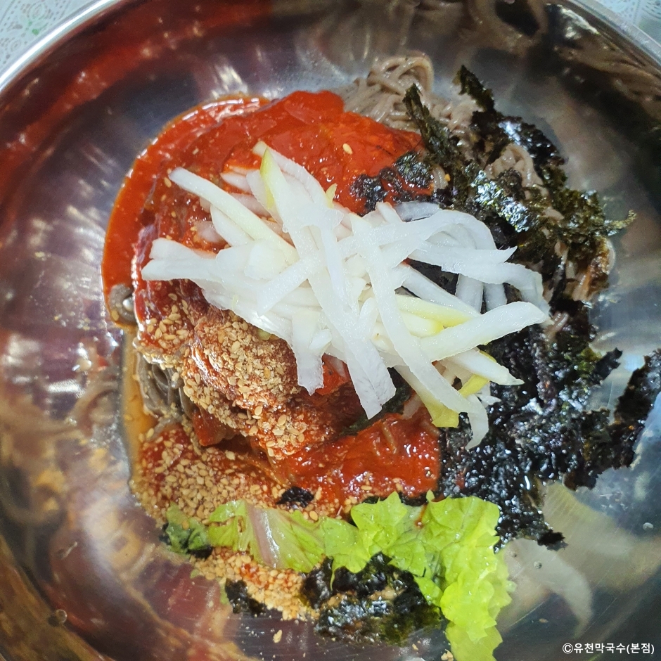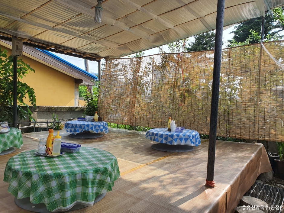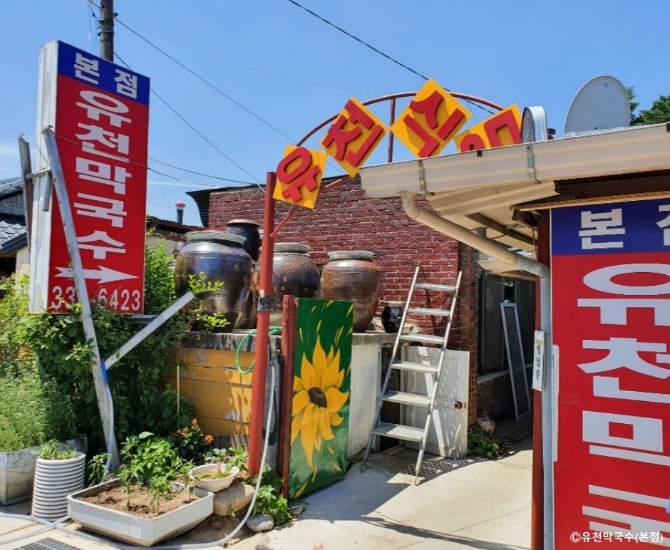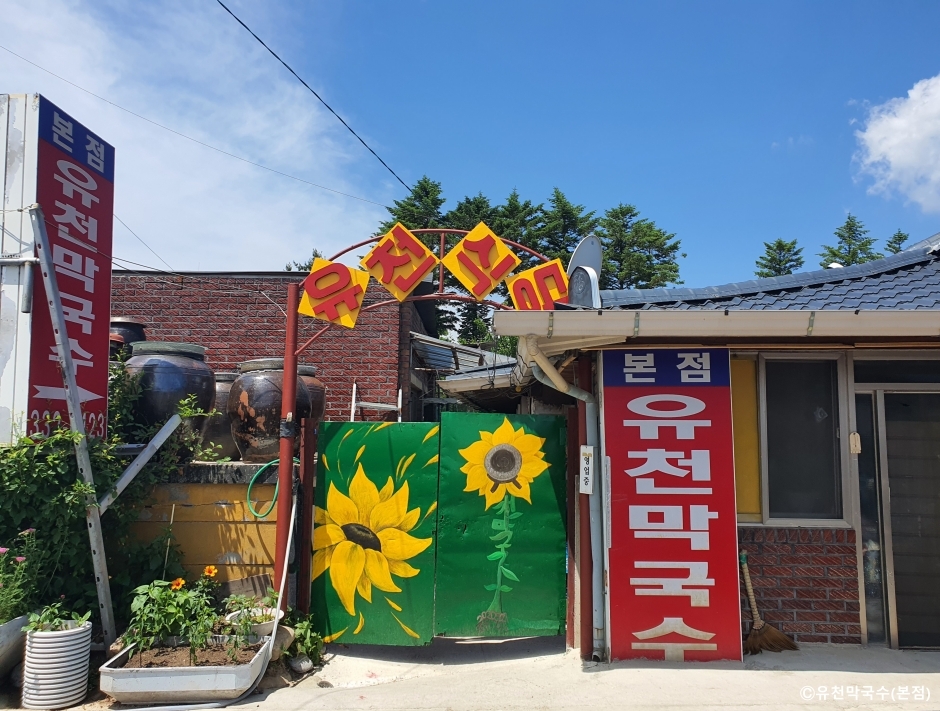 유천막국수 본점은 강원도 평창군에 있는 막국수 전문점이다. 메밀이 많이 나는 평창에서 막국수 집은 흔하지만, 이곳은 한 곳에서 오랫동안 같은 맛을 유지하고 있어 2014년부터 블루리본 서베이에 맛집으로 계속 등록되는 맛집이다. 3대째 내려오는 씨간장을 이용해 육수를 만들어 깊은 맛이 배어 있다. 막국수 외에도 도토리 묵사발, 꿩 만둣국과 같은 강원도 토속 음식을 모두 맛볼 수 있는 강원도 향토 음식점이다. 매장은 예전 시골 주택을 개조해서 개업 때부터 지금까지 사용하고 있다.