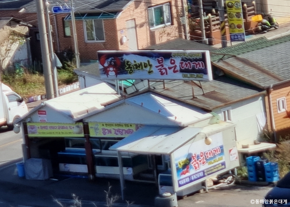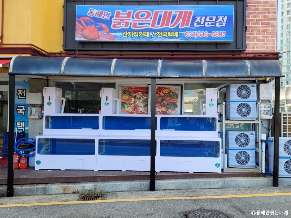 동해안붉은대게는 강원도 속초시 조양동에 있는 홍게요리 전문점이다. 홍게와 대게로 다양한 음식을 준비하는데 대표 메뉴는 홍게 간장게장이고 이 밖에 홍게 찜, 홍게 라면, 홍게 탕과 오징어순대, 볶음밥 등이 있다. 홍게 간장게장을 시키면 두부조림, 감자조림, 고사리나물, 김치 등의 밑반찬과 미역국을 곁들인 한상을 차려 준다. 홍게는 1인분에 한 마리가 나오는데 먹기 좋게 손질을 해서 예쁘게 담아준다. 게딱지 안에는 달걀노른자, 쪽파, 참기름, 깨소금이 들어 있어 밥을 비벼 먹을 수 있다. 주차는 속초해수욕장 제1주차장이 있어 무료로 사용할 수 있다.