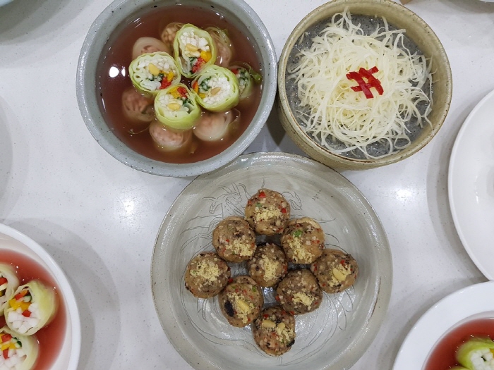 채미원은 일체의 화학조미료를 사용하지 않고 자연재료 고유의 맛을 살려 건강한 먹거리를 제공한다. 채미원의 대표메뉴는 간단하지만 든든한 주물럭 쌈밥, 담백하고 칼칼한 병어·갈치조림, 녹차물과 찰떡 궁합인 굴비구이 등이 있다. 주물럭 쌈밥은 제육볶음이 제공되는데, 간장과 고추장 중에 선택하여 먹을 수 있다. 조림은 2인 이상부터 주문이 가능하다. 이외에도 계절메뉴인 참조기탕, 사전예약이 필수인 오찬정식과 한정식이 있다.