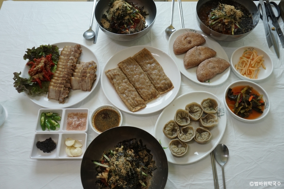 범바위막국수는 강원도 속초시에 있는 막국수 전문점이다. 척산 온천 근처에 있어 온천욕을 즐긴 후에 시원한 막국수를 먹으러 들를 수 있는 곳이다. 막국수는 주문받으면 바로 제면 해서 조리한 후 제공하고 있어 주문하고 난 후에는 변경이 어렵고 서빙까지 시간이 걸리는 편이다. 회 막국수에 올라가는 고명이 가자미회가 많은데 이 집은 대관령의 특산물인 명태회를 올려 주는 곳이다. 명태회가 막국수의 감칠맛을 더욱 높여 준다. 곁들임 메뉴로는 수육, 메밀찐만두, 찰수수부꾸미, 오징어순대가 있어 다양하게 즐길 수 있다.