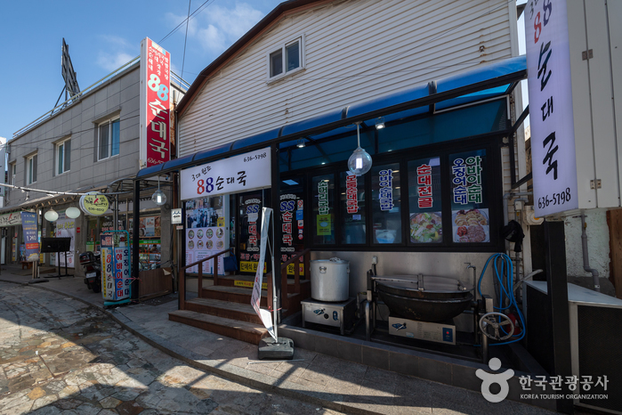 순대집들이 늘어선 골목길에 위치한 88순대국에는 각별한 맛이 숨어 있다. 팔팔 끓여내는 순대국 한 그릇에 3대에 걸쳐 축적된 노하우들이 오롯이 담겨 있다. 그야말로 세월의 맛이다. 88순대국의 메뉴에는 순대가 들어가 있지 않은 것이 거의 없다. 순대국밥부터 김치순대국밥, 오징어순대, 아바이순대, 아바이순대라면 등 조금씩 다른 순대 음식을 맛볼 수 있다. 변화하는 입맛에 맞춰 꾸준히 메뉴를 연구하고 개발해온 결과이다. 골고루 맛보고 싶다면 모듬 메뉴를 주문하면 된다. 아삭한 김치와 깍두기는 순대국과 찰떡궁합을 이룬다. 순대가 취향이 아닌 경우 내장탕이나 선지해장국, 소머리국밥 같은 메뉴도 마련되어 있다. 뭐니해도 이곳에서 꼭 맛봐야 할 음식은 아바이 순대이다. 보통 당면을 넣어 속을 채우는 일반 순대와 달리 각종 야채와 콩, 고기를 골고루 섞어 만든 독특한 맛과 식감을 즐길 수 있다.