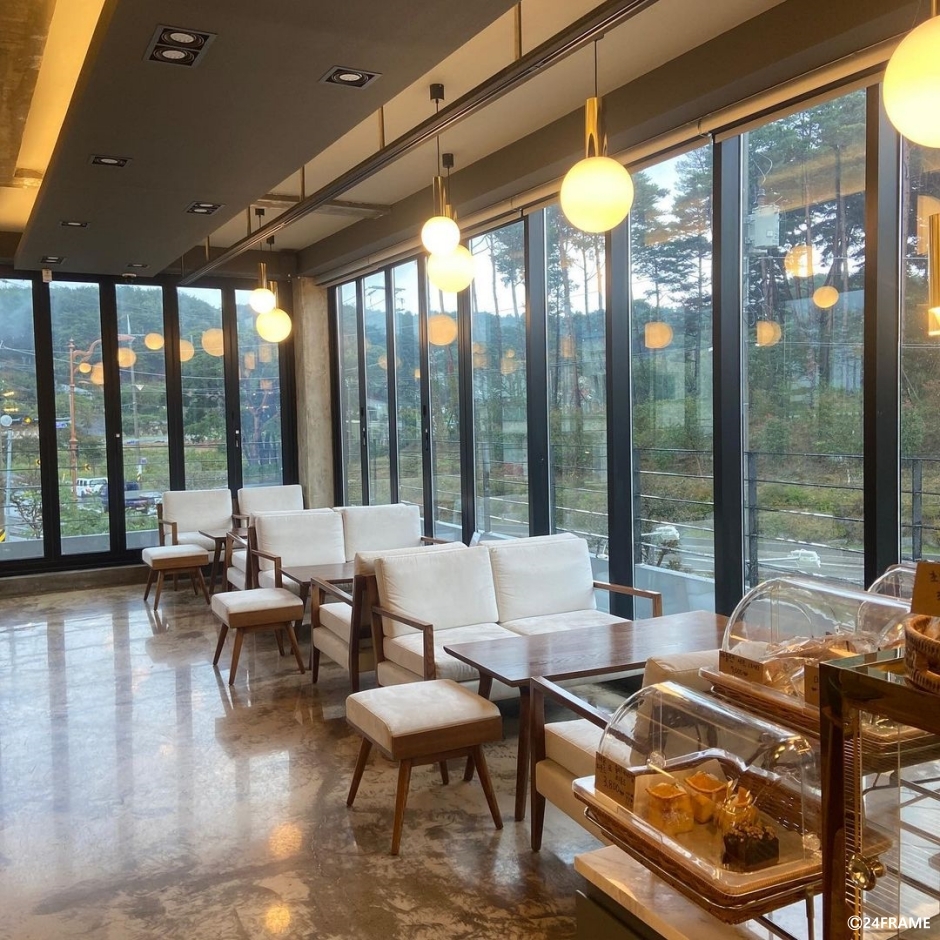 24FRAME은 강원도 강릉시에 있는 베이커리 카페이다. 넓게 펼쳐진 논이 보이는 전망은 사계절의 변화하는 모습을 지켜볼 수 있다. 강릉 두부라테, 강릉 옥수수라테, 강릉 흑임자라테, 강릉 버터크림라테 등 특별한 라테들이 시그니처 메뉴이다. 매일 신선한 재료로 구워 내는 신선한 빵들도 디저트 메뉴로도 인기이고, 포장 손님들도 많다. 천연 발효종을 사용해서 만드는 빵은 당일 생산, 당일 판매 원칙을 지키고 있다. 루프탑에는 선베드 같은 의자와 파오 같은 천막이 준비되어 있다. 실내는 창가 쪽으로는 입식 좌석이 안쪽으로는 좌식 좌석이 준비되어 있어 취향대로 편한 좌석을 선택할 수 있다. 매장 앞에 전용 주차장이 있다.
