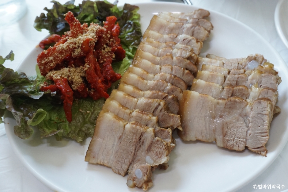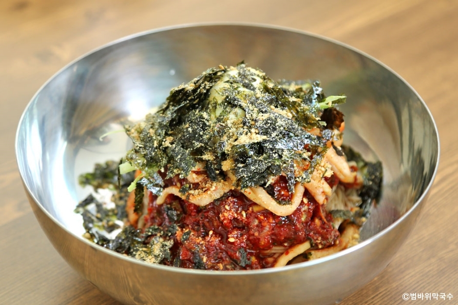 범바위막국수는 강원도 속초시에 있는 막국수 전문점이다. 척산 온천 근처에 있어 온천욕을 즐긴 후에 시원한 막국수를 먹으러 들를 수 있는 곳이다. 막국수는 주문받으면 바로 제면 해서 조리한 후 제공하고 있어 주문하고 난 후에는 변경이 어렵고 서빙까지 시간이 걸리는 편이다. 회 막국수에 올라가는 고명이 가자미회가 많은데 이 집은 대관령의 특산물인 명태회를 올려 주는 곳이다. 명태회가 막국수의 감칠맛을 더욱 높여 준다. 곁들임 메뉴로는 수육, 메밀찐만두, 찰수수부꾸미, 오징어순대가 있어 다양하게 즐길 수 있다.