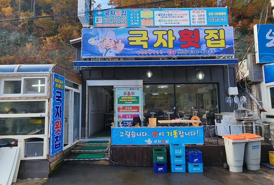 거제 외포항 직판장 앞에 자리한 외포국자횟집은 신선한 활어회를 사계절 맛있게 먹을 수 있는 곳이다. 봄에는 도다리쑥국과 멸치 회무침, 여름엔 하모 회와 갑오징어 회, 가을엔 전어, 겨울에는 대구회, 대구찜, 대구탕, 미기 회무침, 미기탕을 맛볼 수 있다. 대표 메뉴는 멸치 회무침, 멸치튀김, 멸치찌개가 무한리필 되는 멸치 회 코스이다. 신선한 재료로 만들어 비린 맛이 없고 부드러운 식감으로 맛이 좋다. 이 외에 모둠회, 회덮밥, 물회, 우럭매운탕 등 사계절 내내 즐길 수 있는 메뉴들도 준비되어 있다.