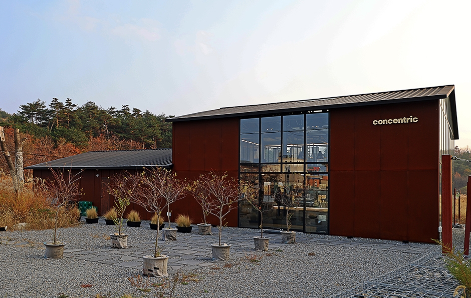 낙산사 근처에 위치한 카페 컨센트릭 양양은 들판 뷰의 여유로움을 느낄 수 있는 카페다. 외관은 녹슨 건물과 자갈밭이 분위기 있는 공장처럼 보이지만 실내는 따뜻한 조명과 독특한 인테리어로 눈길을 끈다. 층고가 높고 사방이 탁 트인 카페는 1, 2층이 훤하게 보여 시원한 느낌을 준다. 디저트 종류는 커피와 잘 어울리는 휘낭시에와 스콘이 종류별로 준비되어 있다. 설악해수욕장과 낙산사와 가까워 연계 관광하기 용이하다.