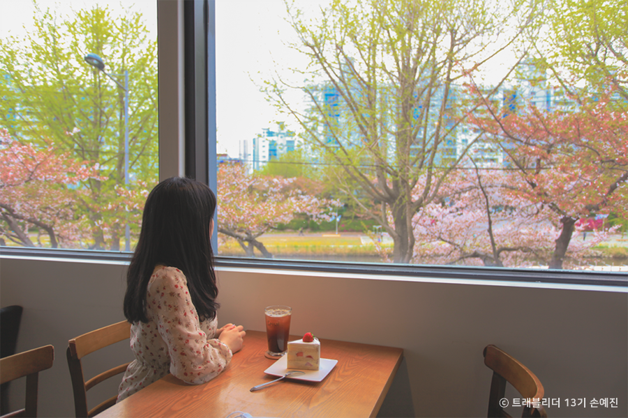부산 동래구의 온천천로는 봄날에 흐드러지게 핀 벚꽃이 아름다운 거리다. 과거 동래 지역의 젖줄 역할을 했던 온천천을 따라 벚나무들이 즐비한 때문인데, 하천과의 경계에는 노란색 유채꽃까지 피어 계절의 정취에 흠뻑 빠지게 한다. 온천천 벚꽃길 바로 곁에 자리한 카페 르쎄는 이 같은 풍경을 온전히 즐기기에 더없이 좋은 위치다. 통유리 너머 분홍색 벚꽃과 파란 하늘을 마음껏 눈에 담을 수 있다. 이곳에서는 커피와 차 외에 매장에서 전문 파티시에가 직접 만든 케이크와 디저트를 낸다. 특히 치즈케이크와 녹차 케이크, 쇼콜라 케이크, 무화과 케이크, 크레이프 케이크 등 케이크 종류가 굉장히 다양하다. 미리 주문하면 홀 케이크 구매도 할 수 있다.