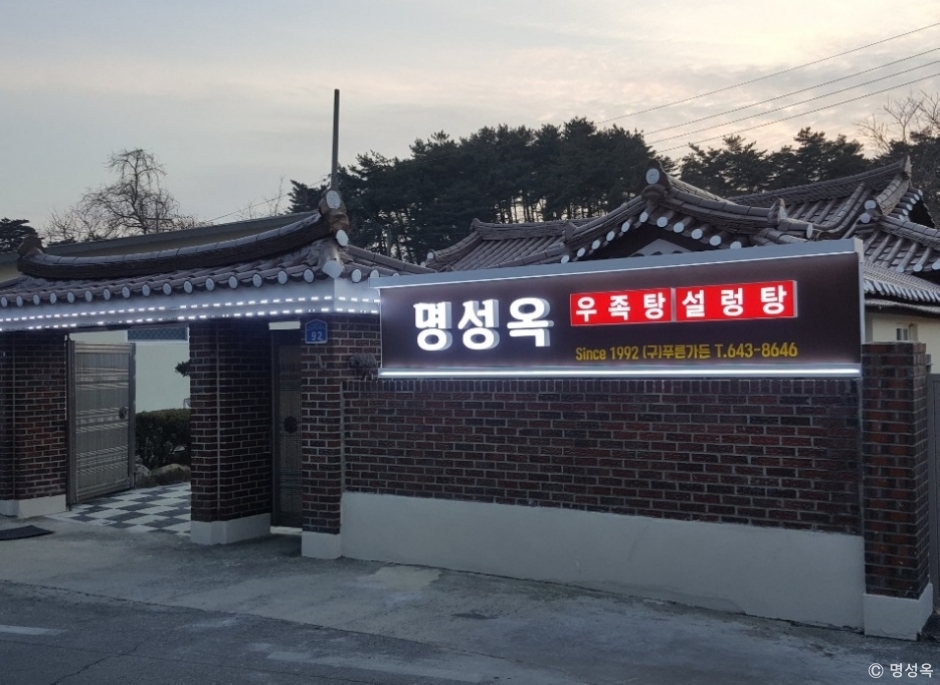 명성옥은 강릉시 노암동에 있는 오래된 설렁탕, 우족탕 전문점이다. 뜨끈한 것이 생각날 때 찾아가서 식사하기 좋은 식당으로 오래된 한옥을 리모델링해서 사용하고 있다. 외부는 옛날 개량 한옥을 그대로 살렸고, 내부는 완벽하게 하나로 만든 큰 식당이다. 진하게 고아 낸 국물에 고기다 푸짐하게 들어 있어 밥을 말아 깍두기와 함께 먹으면 별미다. 밑반찬은 배추김치, 깍두기, 간장 무장아찌로 설렁탕이나 우족탕에 잘 어울린다, 설렁탕에 넣어 먹는 소면은 별도의 접시에 담겨 나와 취향대로 즐길 수 있다. 식당 내부가 깔끔하고 매장 앞에 넓은 전용 주차 공간이 있어 이용이 편리하다.