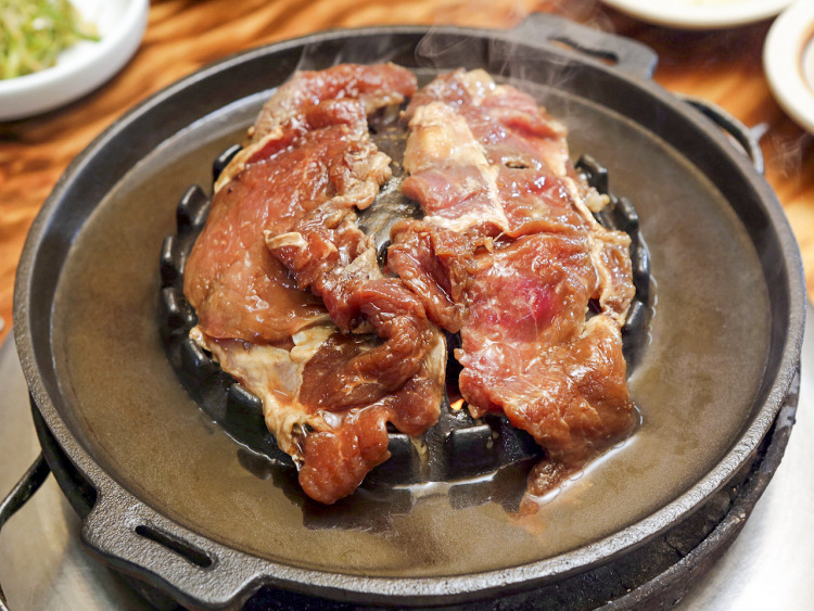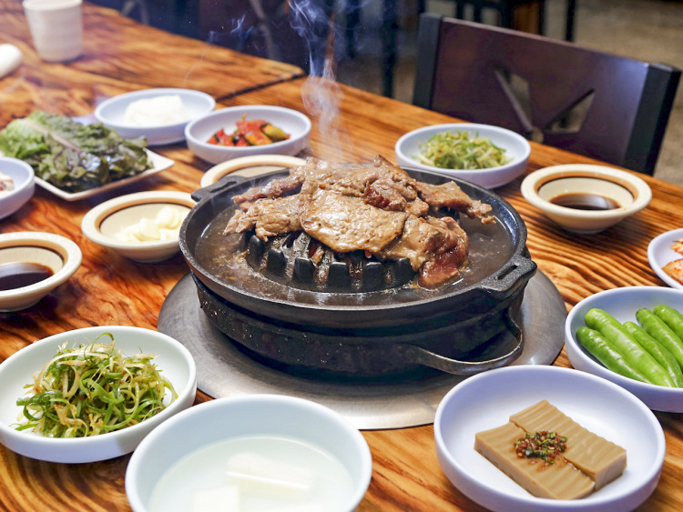 석산장은 30년째 문을 열고 있는 천안 맛집이다. KBS 2TV <생생정보>에 출연하기도 했다. 메뉴는 돼지갈비를 비롯해 된장찌개, 냉면으로 단 세 가지다. 이곳은 돼지갈비를 굽는 불판이 특이한데 돼지갈비를 구울 때 나오는 육수를 모아주는 형태다. 불판에 모인 육수에 밥을 비벼 먹는 맛이 일품이다. 내부에 단체석이 마련돼 있어 단체 모임에도 어울린다. 매주 수요일은 휴무다.