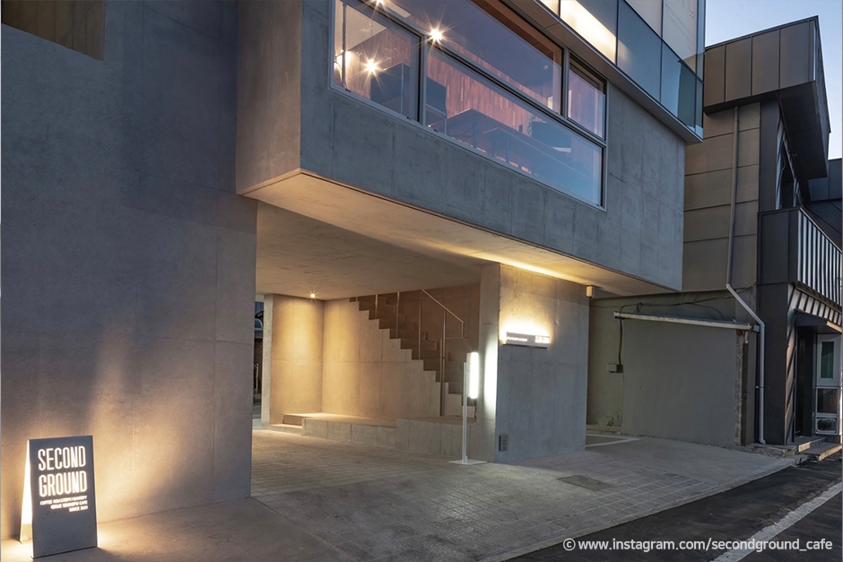 거제 성포항에 위치한 세컨드그라운드는 바다 풍경을 한눈에 담을 수 있는 카페이다. 필로티 구조의 건물로 총 3층으로 이루어진 세컨드그라운드는 1층 주차장, 2층, 3층 실내 공간, 루프탑으로 이루어져 있다. 층고가 높고 계단이 많아 안전상의 이유로 노키즈 존으로 운영 중이다. 계단을 올라가면 커피와 빵을 주문할 수 있는 공간이 나온다. 직접 만드는 바스크 치즈케이크, 티라미수, 까눌레, 휘낭시에, 타르트, 쿠키 등 다양한 베이커리 종류가 있다. 3층으로 올라가면 통창으로 바다와 가조 연륙교를 볼 수 있다. 루프탑에는 바다를 배경으로 사진을 찍을 수 있는 포토존도 마련되어 있다.