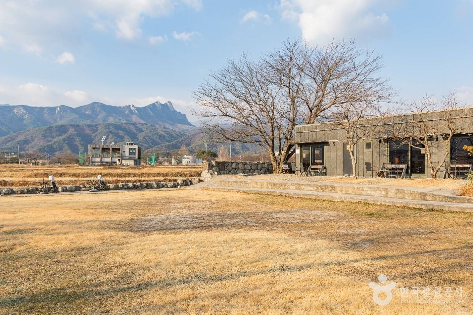 스테이 오롯이는 펜션으로 운영하던 곳을 카페로 개조하여 오픈한 곳이다. 기존 펜션 인테리어를 잘 살린 독특한 카페 분위기를 느낄 수 있다. 실내 통창 넘어 보이는 정사각형의 중정이 이곳을 대표하는 공간이다. 또한 야외 테라스로 나가면 멀리 설악산이 보이고 돌담장 너머로는 자연의 논밭뷰를 즐길 수 있다. 본관과 별관과 야외좌석으로 다양한 공간에서 편안한 분위기로 커피와 디저트를 즐길 수 있으며 주차장도 넓어 이용하기 편리하다. 전구역 노펫존, 키즈케어존으로 운영 중이다.