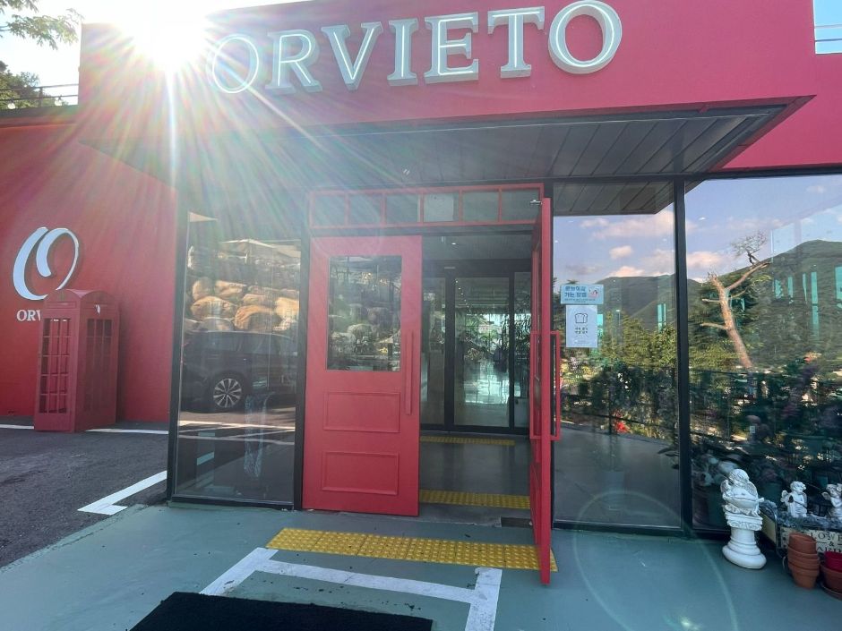 시간이 멈춘 듯한 여유,힙한 외관부터 아늑한 인테리어까지 청도에서 최고의 뷰를 자랑하는 오르비에토! 힙한 외관의 익스테리어와 포토존으로 2080 모든 세대가 즐길 수 있는 감각적인 디자인을 갖추고 있다. 이 곳은 지역과 함께 발전하는 것을 목표로 청도 대표 특산물인 미나리를 활용한 미나리불고기파스타를 강력추천 메뉴로 선보인다.