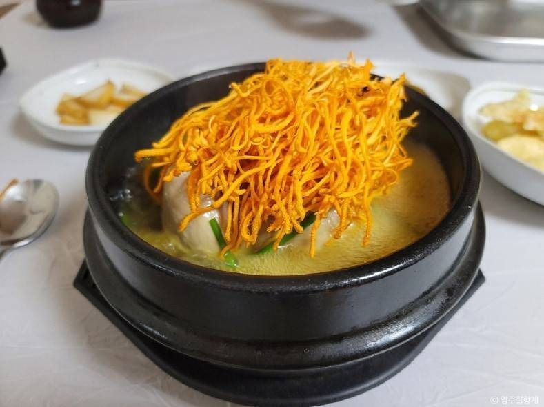 주변에 좋은 온천이 많은 곳으로도 유명한 영주의 삼계탕 맛집이다. 특히 온천욕을 즐기러 가는 사람들에게 빼놓을 수 없는 보양식 먹거리 영주 칠향계는 영주를 드러낼 만한 보양을 갖춘 약선음식으로서 일곱 가지 맛과 향과 멋을 겸비한 특별식이다. 몸을 보하고 기혈을 돕는 인삼과 잔대, 하수오, 백봉영, 전초, 도라지, 생강의 일곱 가지 한약 재료가 들어가 향을 더해준다. 영주 칠향계는 향토음식점 6호로도 지정되어 있으며 메뉴 중 영주 선비정식은 칠향계의 밑반찬과는 달리 전날 예약한 분들에게만 한해서 정성을 다해 자신 있게 준비하여 내놓는 메뉴이다. 영주선비문화축제에서 인삼 칠향계로 대상 받은 이력이 있을 만큼 그 맛을 지켜가고 있는 영주칠향계는 맛의 풍성함을 느끼게 해준다.