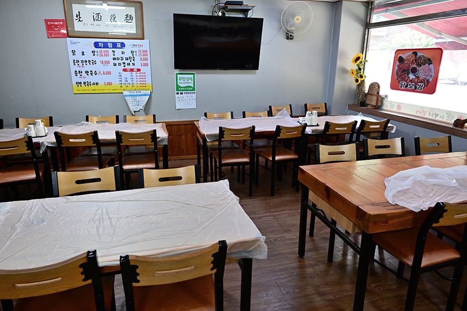 창원 현지인 추천 맛집 춘천막국수닭보쌈은 양념 닭고기와 샐러드, 보쌈김치, 파무침, 쌈 채소를 함께 먹는 닭 보쌈 전문점이다. 평일 오전 11시부터 가게 앞 손님들로 북적거리는 춘천막국수닭보쌈은 재료 소진 시 조기 마감을 한다. 닭 보쌈은 인원수에 맞게 소, 대자를 시킨 후 닭고기, 보쌈김치를 추가 주문할 수 있다. 기본 반찬으로 나물, 두부, 열무김치, 메밀전, 돼지껍데기가 나온다. 닭 보쌈과 함께 곁들여 먹으면 맛있는 막국수, 해장국도 이 집 인기 메뉴이다. 식사 후에는 식혜와 커피믹스가 준비되어 있다. 주말 점심시간에는 사람이 많아 대기하는 시간이 길지만 양도 많고 맛도 좋아 한 끼 든든하게 먹을 수 있는 곳이다.