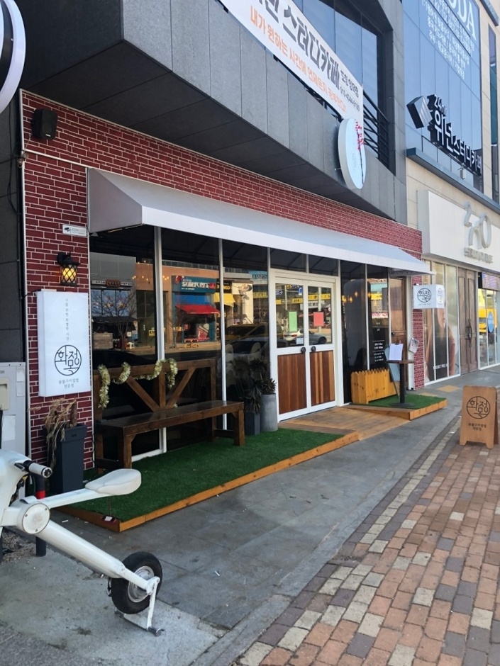 화목정 본점은 경상북도 포항시 북구 양덕동에 있다. 내부에는 단체석이 마련되어 있어 각종 모임을 하기 좋다. 전용 주차장은 없지만, 가까운 곳에 공영주차장이 있다. 대표 메뉴는 최고 등급의 부챗살과 특제 소스가 어우러진 참숯구이 부챗살 스테이크 덮밥이고 벌교 꼬막 비빔밥, 매콤삼겹덮밥, 옛날 생등심 돈가스, 나폴리탄 토마토 파스타 등이 있다. 주문한 음식은 밑반찬이나 피클과 함께 쟁반째 놓고 먹는다. 화목정 본점은 성곡 IC에서 가깝고, 인근에 환호공원, 영일대해수욕장, 죽도시장 등 포항의 유명 관광지가 많다.