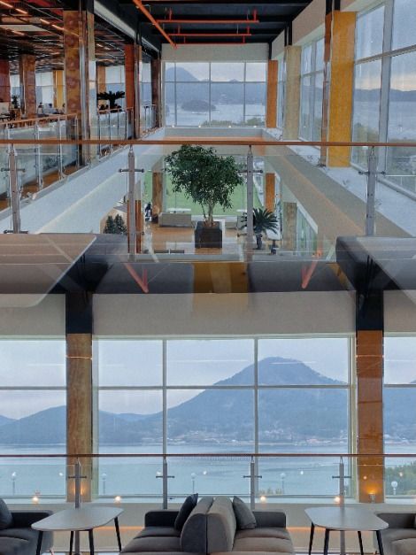 거제도 대형 공원 카페 엄마의 바다는 사면이 탁 트인 바다뷰로 개방감을 느낄 수 있다. 넓은 부지에 나무, 꽃, 진귀한 수석 등 볼거리가 가득하고 대나무 숲길이 펼쳐진 산책로도 조성되어 있다. 매일 직접 반죽해서 만드는 베이커리와 프레쉬한 로스팅 커피를 즐길 수 있다. 넓은 공간에 주차 가능하여 접근성이 좋고, 가족 단위와 같이 단체 방문객에게 보다 더 편안한 분위기를 제공한다.