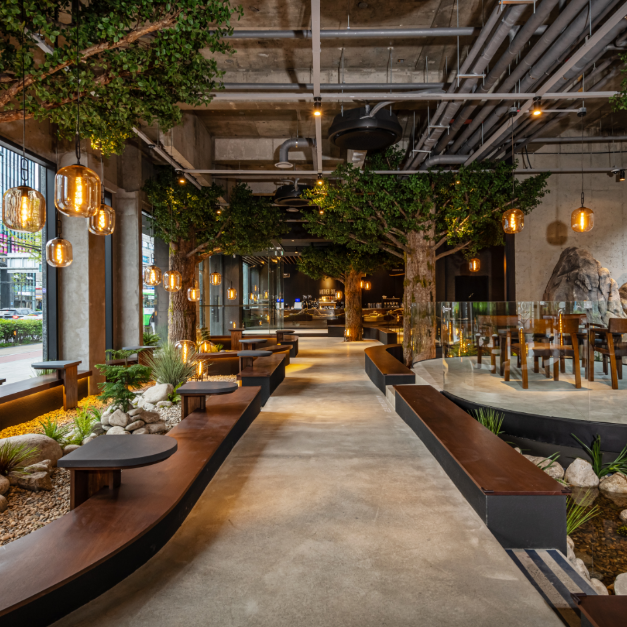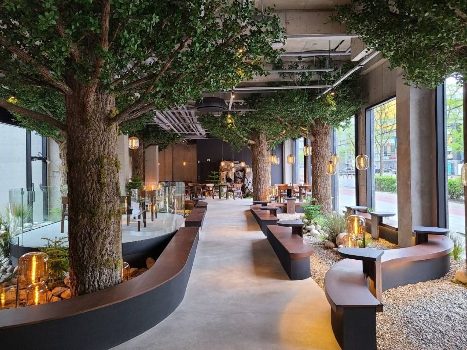 카페 어나더사이드는 굽네치킨 브랜드가 새롭게 론칭한 지앤푸드에서 만들어진 카페이다. 어나더사이드는 따뜻한 인테리어와 넓은 공간이 특징인 곳으로 방문객들에게 편안한 분위기를 제공한다. 시그니처 라떼와 딸기 라떼, 뱅쇼 등 계절 음료가 인기이며 어나더사이드만의 시그니처 메뉴인 숙성라떼는 방문객들 사이에서 인기이다. 브런치 메뉴도 제공되어 있어 보다 더 다양하게 메뉴를 즐길 수 있는 것이 특징이다. 도심 속 휴양지를 컨셉으로 한 공간 답게 숲속에 들어온 듯한 느낌을 주는 인테리어가 인상적이며 여름철에는 빙수메뉴도 판매하고 있어 계절에 알맞는 메뉴를 즐길 수 있다.