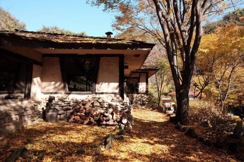 치악산 상원사로 오르는 길, 매표소를 지나 작은 개울을 건너면 길 이름처럼 소롯 길이 나무 사이로 수줍게 모습을 드러낸다. 황토와 돌로 축대를 쌓고 벽을 올린 뒤 너와로 지붕을 얹은 강원도 산골의 너와집 풍경 그대로다. 카페 겸 식당으로 이용되지만 주로 음식을 찾는 손님들이 많다.