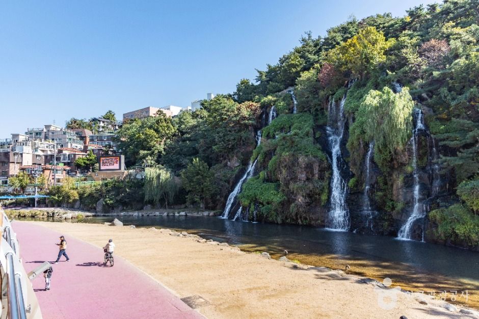 카페 폭포는 서울시 서대문구 홍은동에 위치한 카페로 홍제천 인공폭포를 감상할 수 있는 곳으로 알려져 있다. 메뉴는 아메리카노, 바닐라라떼, 밀크티, 에이드 등 다양한 종류의 음료를 판매한다. 카페의 내부와 외부 어디서든 폭포를 감상할 수 있도록 벤치가 마련되어 있다. 폭포의 모습은 크기가 꽤 크고 자연 절벽에서 흘러 실제 폭포를 보는 것 같이 장관이다. 또한 이곳은 상업공간이 아닌 서대문구에서 운영하는 공간으로 수익금은 관내 대학 장학금으로 사용되어 방문자들에게 뿌듯함까지 전해준다.
