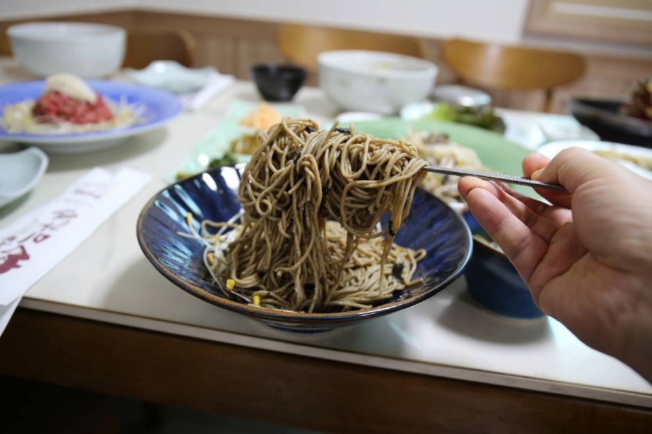 미가연은 쓴 메밀과 단 메밀을 직접 배합하여 매일 현장에서 제면 하며, 청정 대관령 한우를 산지 직송으로 사용한다. 메밀싹에 함유된 루틴 성분은 일반 메밀보다 70배 이상 높아 당뇨와 고지혈증 예방에 효과적이다.