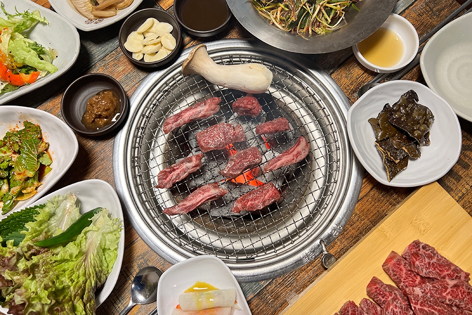 양산 덕계 골프장 가까운 곳에 있는 한상 가득은 바로 도정해 온 쌀로 밥을 지어 진수성찬으로 상을 차리는 밥집이다. 질 좋고 맛 좋은 청정한우를 저렴하게 먹을 수 있으며 가족 모임, 연말모임 등을 할 수 있는 개별 룸도 있어 단체모임 시 안성맞춤이다. 대표 메뉴인 한우산더미불고기는 약간 솟아오른 불판 가운데에 고기와 버섯, 파 등이 올라가고, 빙 둘러서 국물을 부은 후, 끓이며 익혀 먹는다. 불판이 달궈지면 각종 채소와 불고기의 육즙이 흘러내려 깊은 맛이 난다.