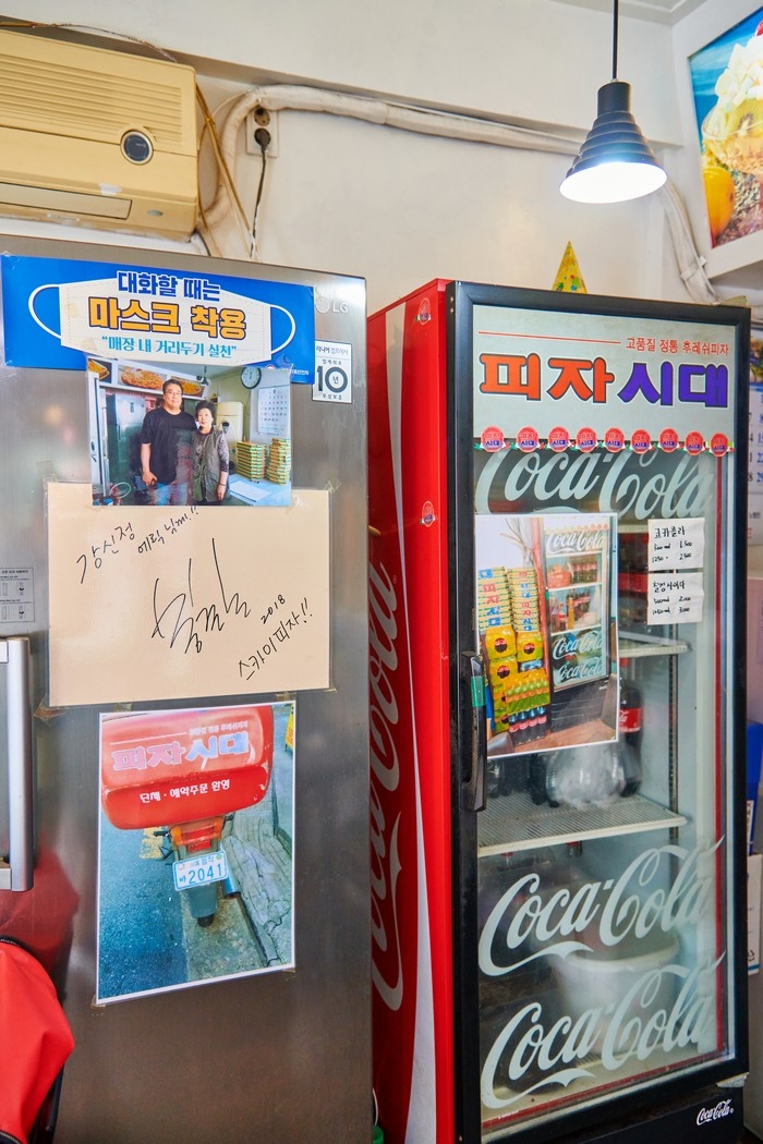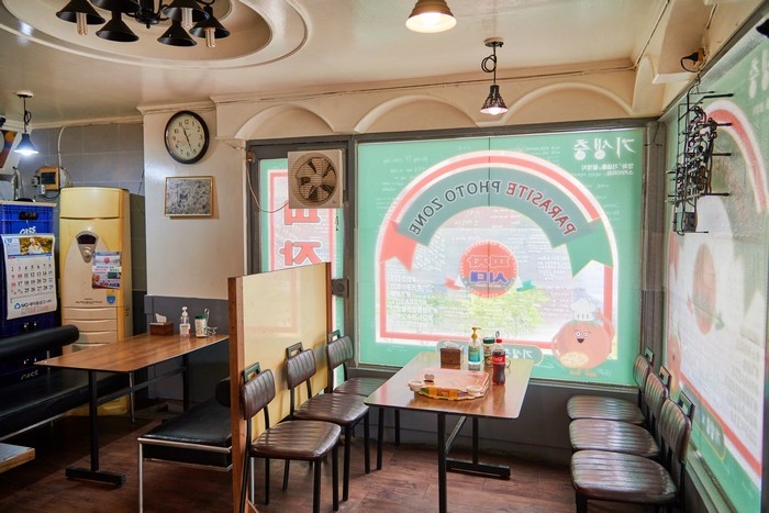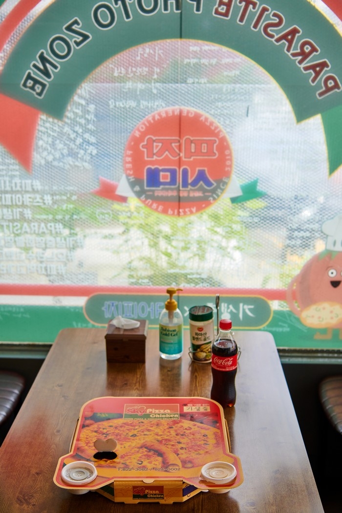 스카이피자는 영화 <기생충>에서 피자시대로 나오는 실제 피자집이다. 한적한 주택가에 자리한 피자집이지만 영화 <기생충>으로 유명세를 치르면서 세계 각국에서 온 영화 팬들이 찾곤 한다. 그리고 행정안정부에서 착한 가격과 청결한 가게 운영으로 좋은 서비스를 제공하는 물가안정 모범업소인 착한가격업소로 선정된 곳이다. 매장 내부는 전체적으로 레트로한 분위기이며 영화에서 사용했던 소품인 피자박스가 쌓여있고 벽면에는 봉준호 감독 사인, 영화 포스터 등으로 꾸며져 있어 인증샷을 남기기 좋다. 또한 매장 내에 두 테이블 정도 준비되어 있어 바로 만들어진 따끈한 피자와 치킨을 맛볼 수 있다. 대표메뉴로는 여러 종류의 피자들이고 그 외에 후라이드, 양념, 간장 치킨들과 강정, 안주류도 준비되어 있다.