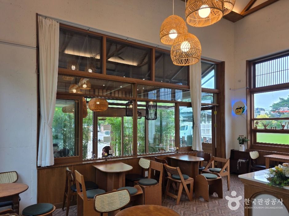 또한 카페 입구부터 이어지는 감성 가득한 공간으로 푸릇한 식물 사이로 난 나무 출입구는 인생샷 명소가 되고 우드톤으로 꾸며진 내부와 테라스는 이국적 정취를 자아낸다. 강문해변 근처에 위치해 있어 포장으로 즐기기에 좋다.